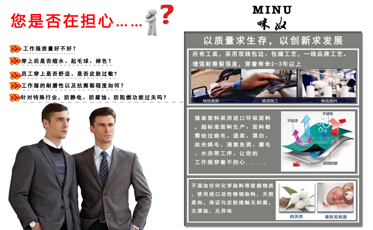 企業權益第一,咪奴始終保障著企業工作服質量!